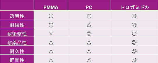 微結晶性透明樹脂のトロガミド®は高い透明性を持ちながら、優れた耐薬品性、耐候性がある!